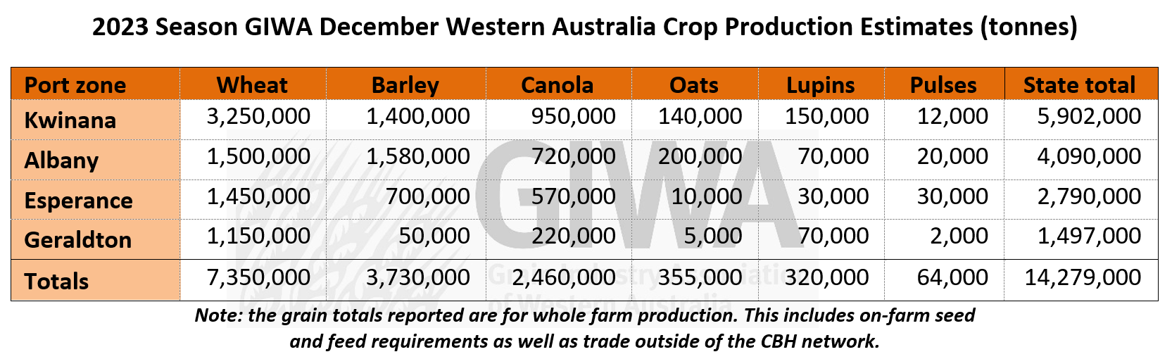 The final tonnage across the zone was higher than was expected just prior to harvest. The bulk of production in the zone was wheat, with half the canola produced compared to 2022 and 80 per cent less lupins produced than 2022.