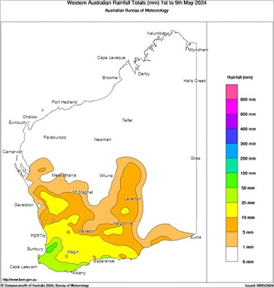 Figure 1: Rainfall totals for early May 2024.Source: Bureau of Meteorology (2024)