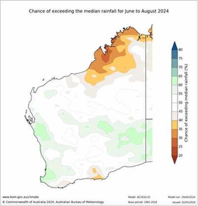 Figure 2: Rainfall outlook for June to August 2024. Source: Bureau of Meteorology (2024)