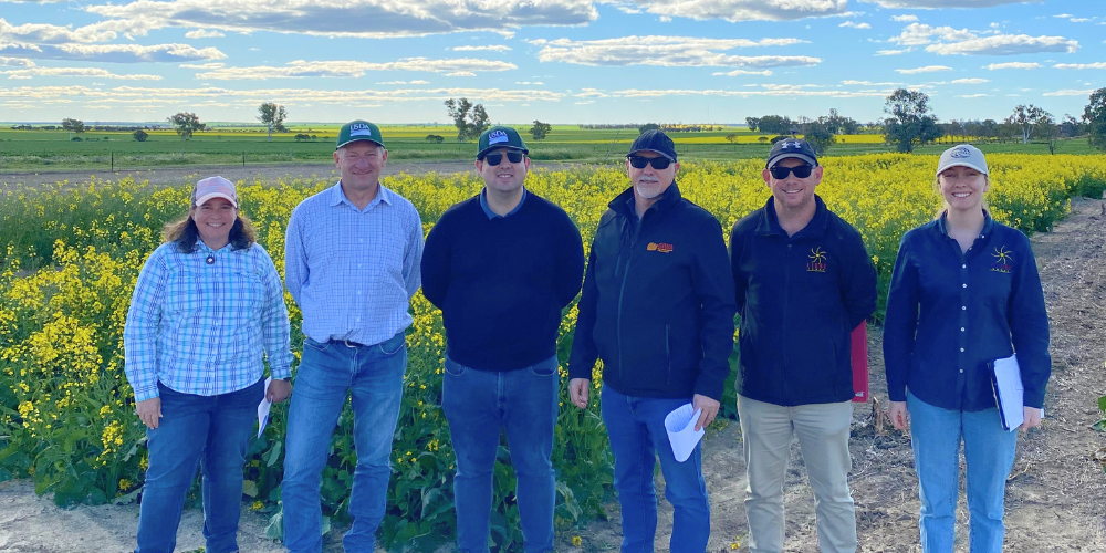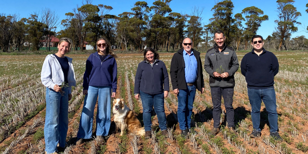 Shannon Moyo, Zeljko Biki, Lazaro Sandoval and Peter Nash with Chris O’Callaghan and Daenia Dundon from Liebe Group at their Nugadong trial site