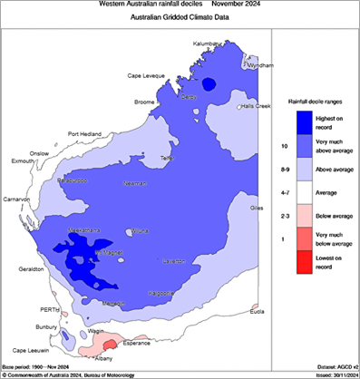 Figure 1: Rainfall deciles for November 2024. Source: Bureau of Meteorology (2024)