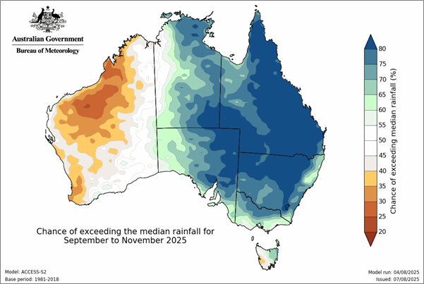 Figure 2: Rainfall outlook for September to November 2025. Source: Bureau of Meteorology (2025)