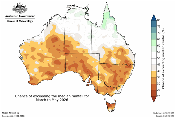 Figure 2: Rainfall outlook for March to May 2026. Source: Bureau of Meteorology (2026)
