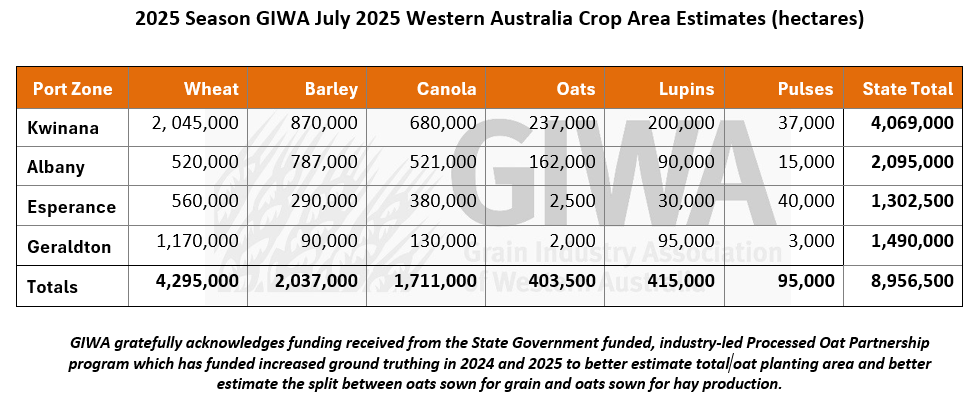 Crop potential in the east sits around average to slightly below average and will be dependent on August to September rainfall. Western areas (west of Albany Highway and Broomehill) are in very good shape, with “crops as good as they’ve ever been.”