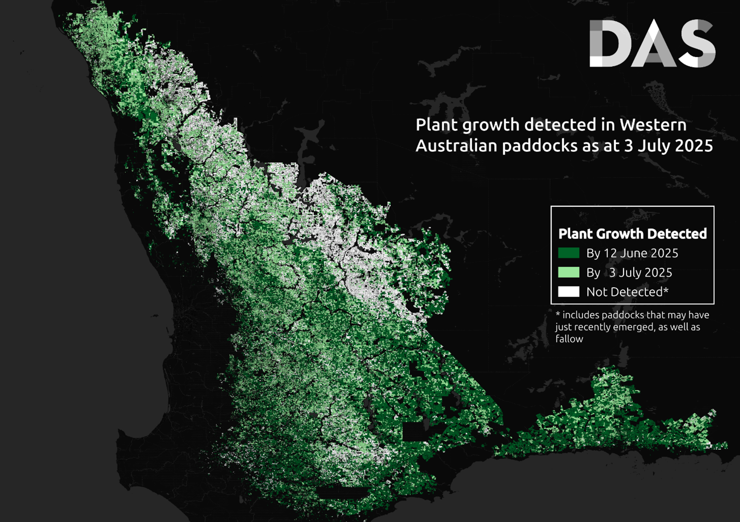 The staggered timing of crop emergence in the Western Australian grain belt both across and within regions, has made predictions of final outcomes difficult at this point in the grain growing season.