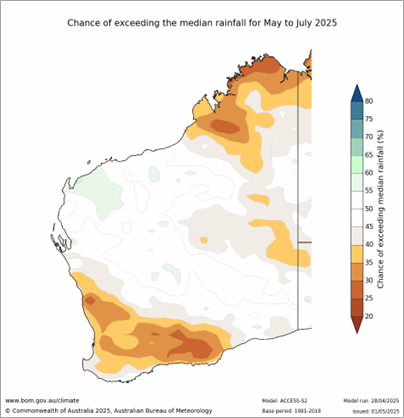 Figure 2: Rainfall outlook for May to July 2025. Source: Bureau of Meteorology (2025)
