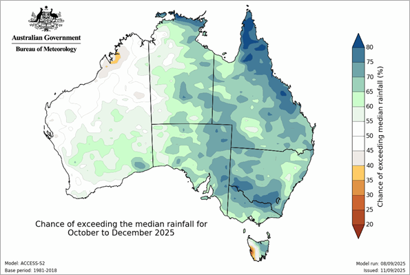 Figure 2: Rainfall outlook for September to November 2025. Source: Bureau of Meteorology (2025)